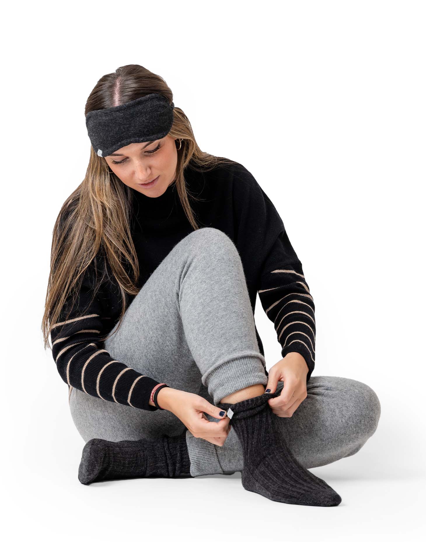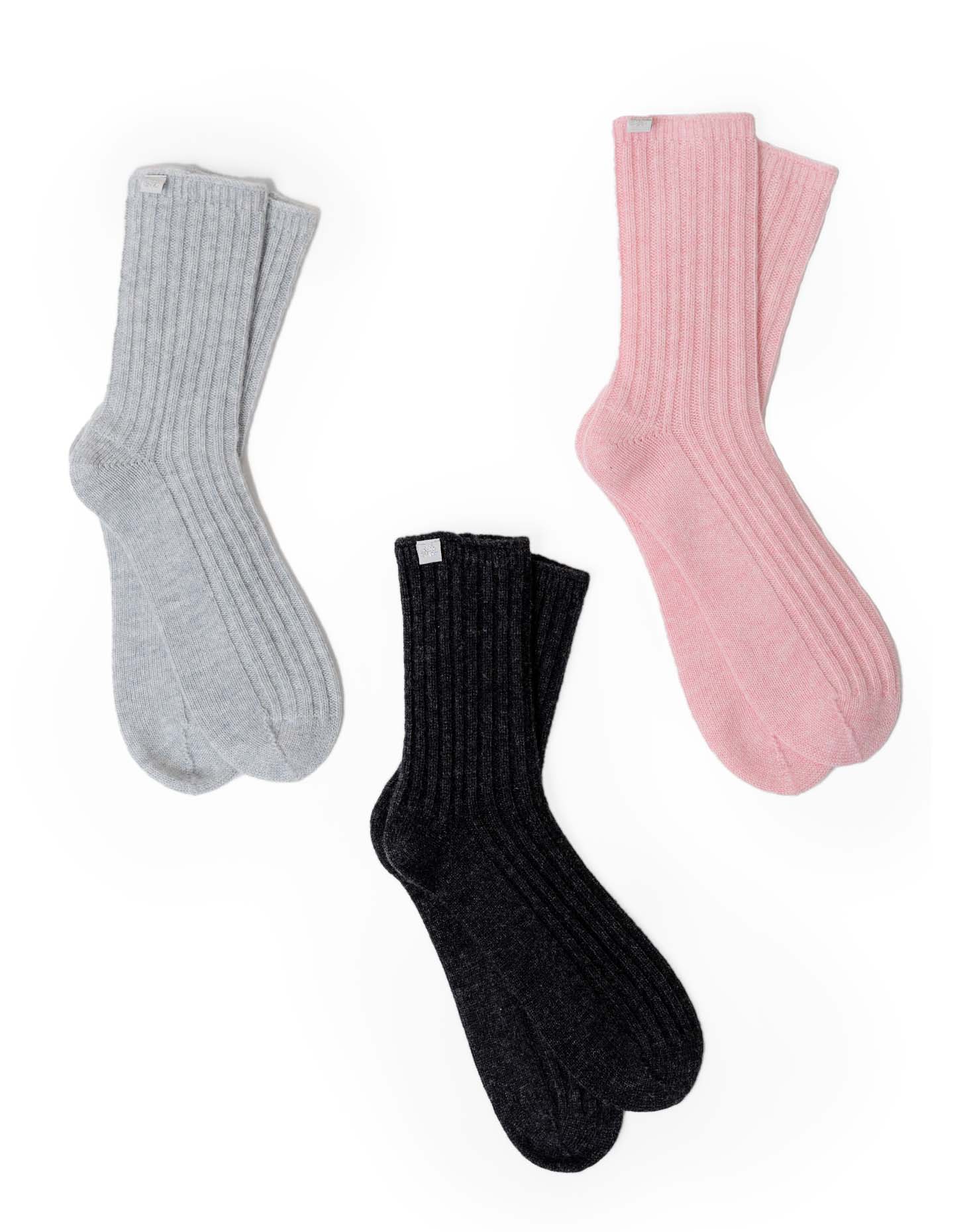 Relax and keep warm in our Cosy cashmere socks. A perfect Christmas gift for someone special! The Cosy socks are available in three colours: Charcoal Grey, Pink and Silver Grey.