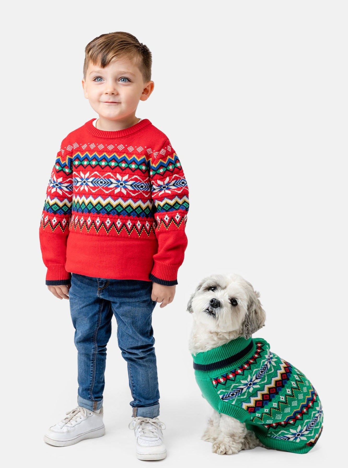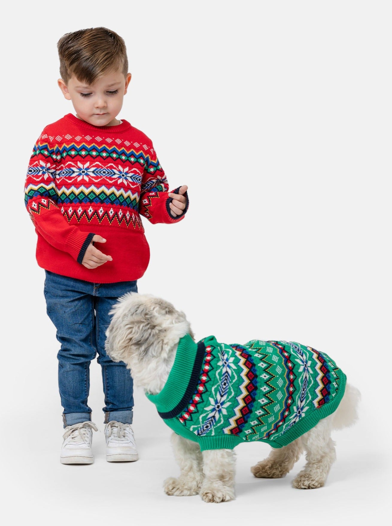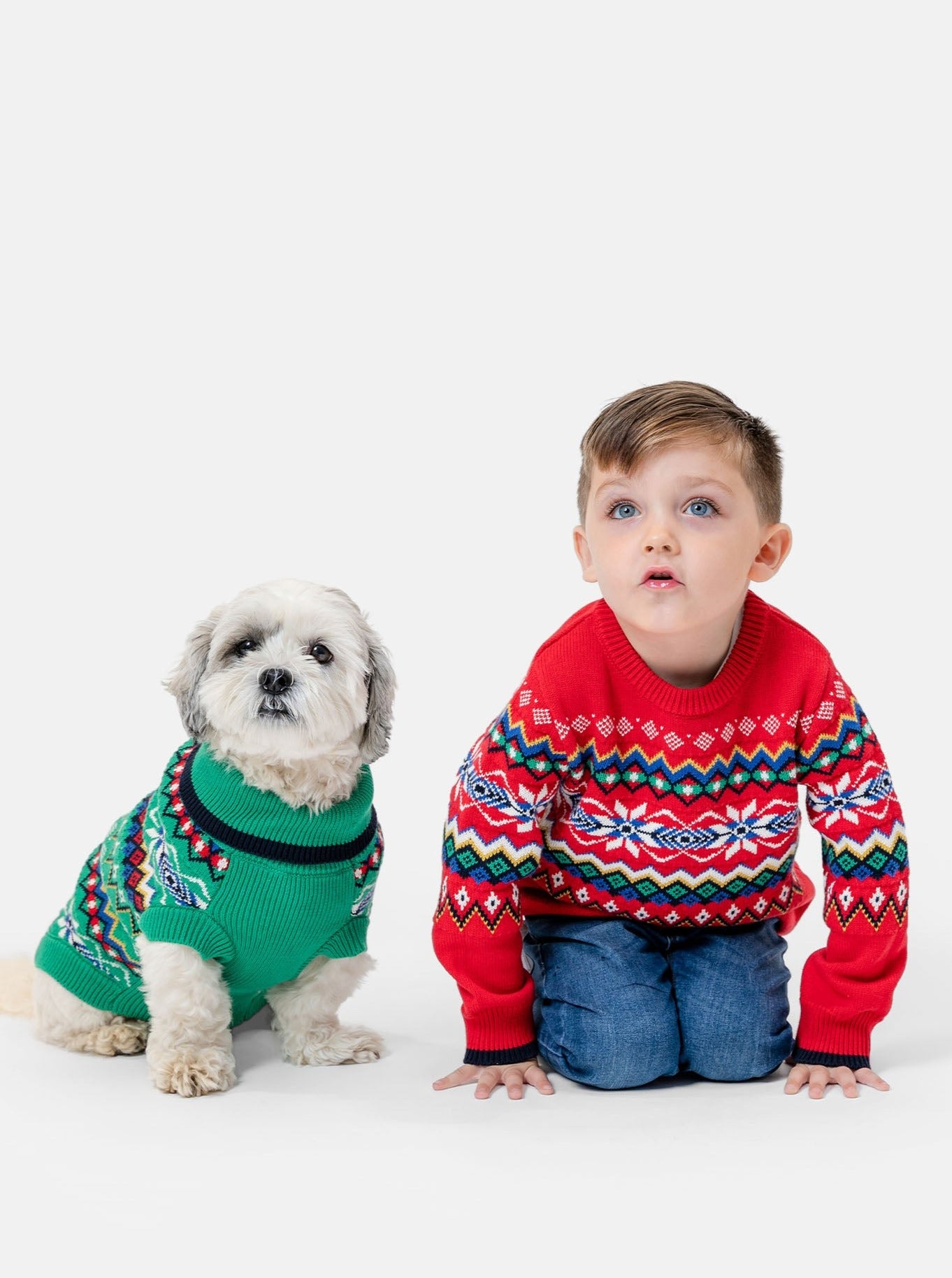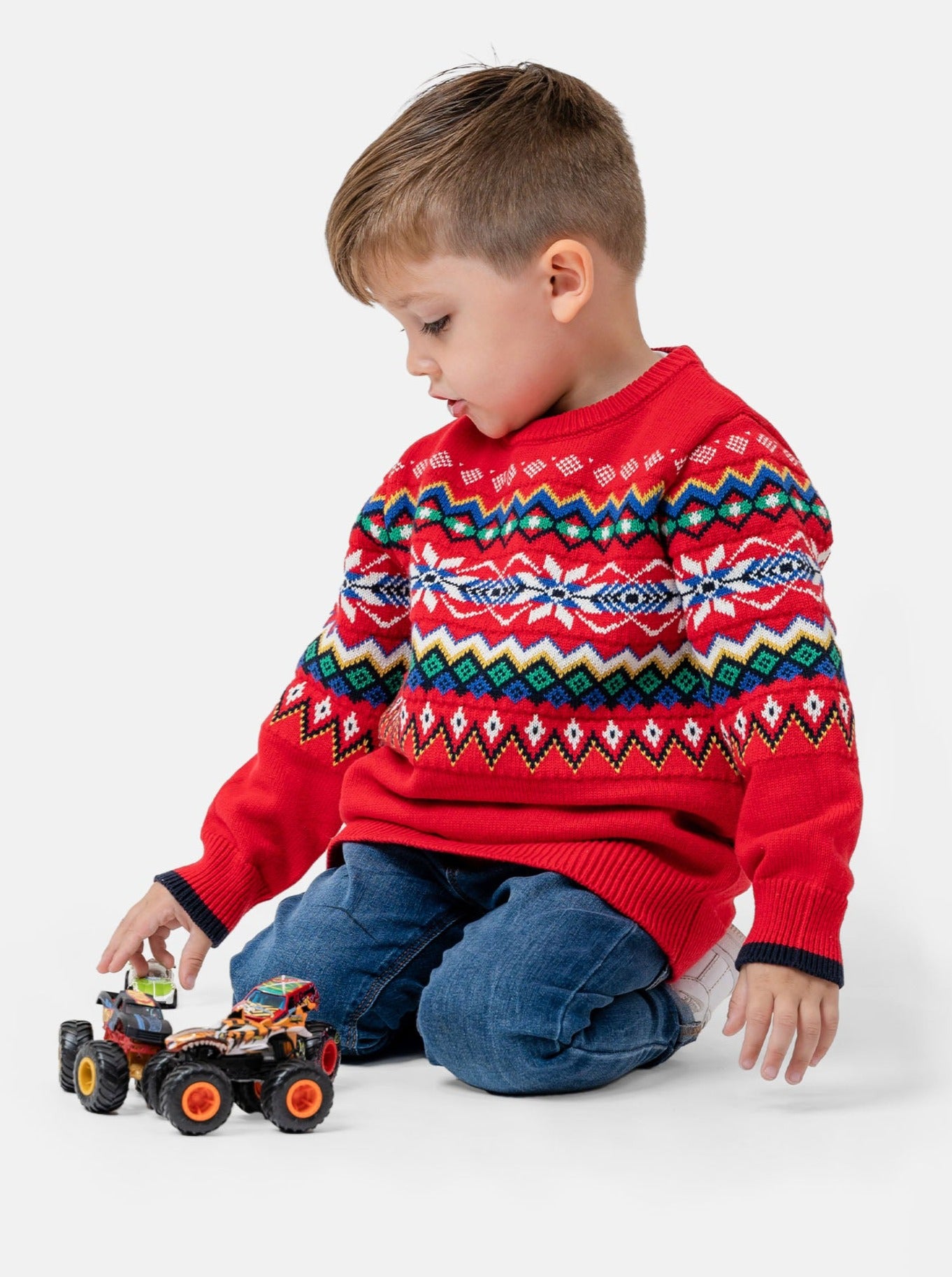 A classic fit, yolk fairisle Red jumper made from 100% Cotton. This jumper is part of a Christmas Family set but can be purchased individually.