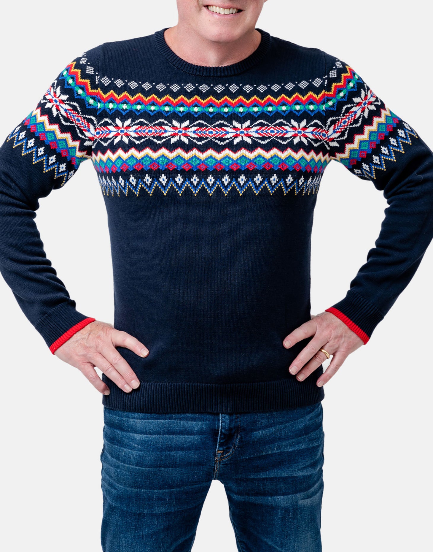 A classic fit, yolk fairisle jumper made from 100% Cotton. This jumper is part of a Christmas Family set but can be purchased individually.